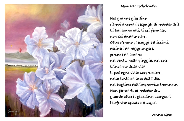 Per questo motivo, di fronte ad un vissuto percepito e seguito empaticamente nel suo cammino, le emozioni si trasformano in parole. I pensieri, espressi osservando un'opera vista crescere giorno per giorno ed entrata nella mente, creano un filo che si trasforma in sentimenti che, trasportati sul foglio, diventano "I PENSIERI DI ANNA"